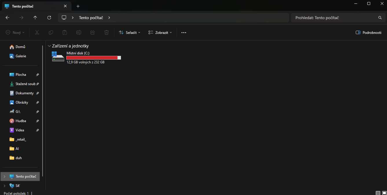 Takhle to vypadá po restartu, ale když mám PC zaplé delší dobu. (a běžně ho nevypínám, až poslední dobou na ty restarty) - tzn. uvolní se místo