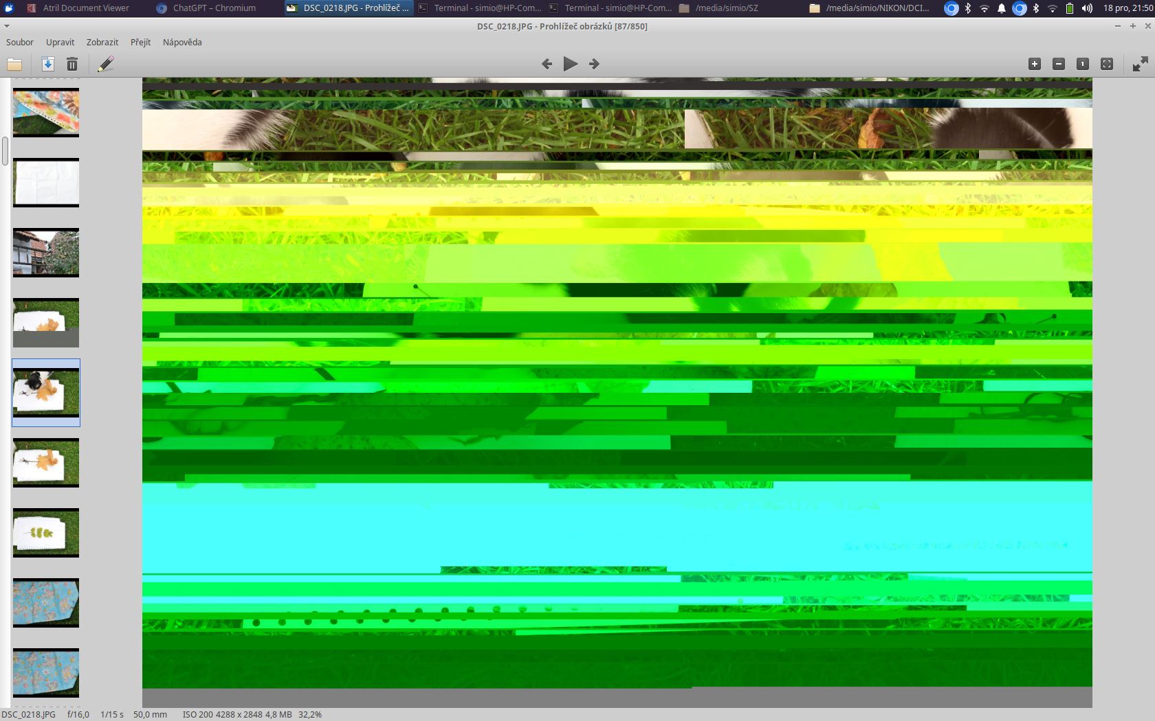 Když bitovou kopii namountuji do systému a otevřu v průzkumníku souborů, u většiny fotografií vidím náhledy, které vypadají naprosto v pořádku. Když však fotku otevřu v prohlížeči fotek, je velmi značně poškozená a v zásadě nepoužitelná (barevné pruhy, prázdná místa, ...). To se děje u drtivé většiny fotek, viz screenshoty.