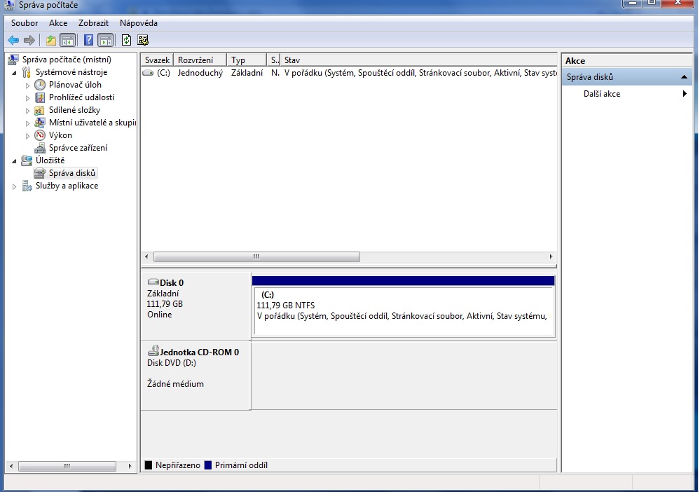 Vlož sem obr. Správce zařízení a správu uložných zařízení - disků.