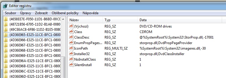 bohužel u mně to nepomáhá, protože když se registrem proklikám dle tamní rady až k tomu cíli, tak to poslední :a vymažte LowerFilters and UpperFilters tam já nemám viz screen.