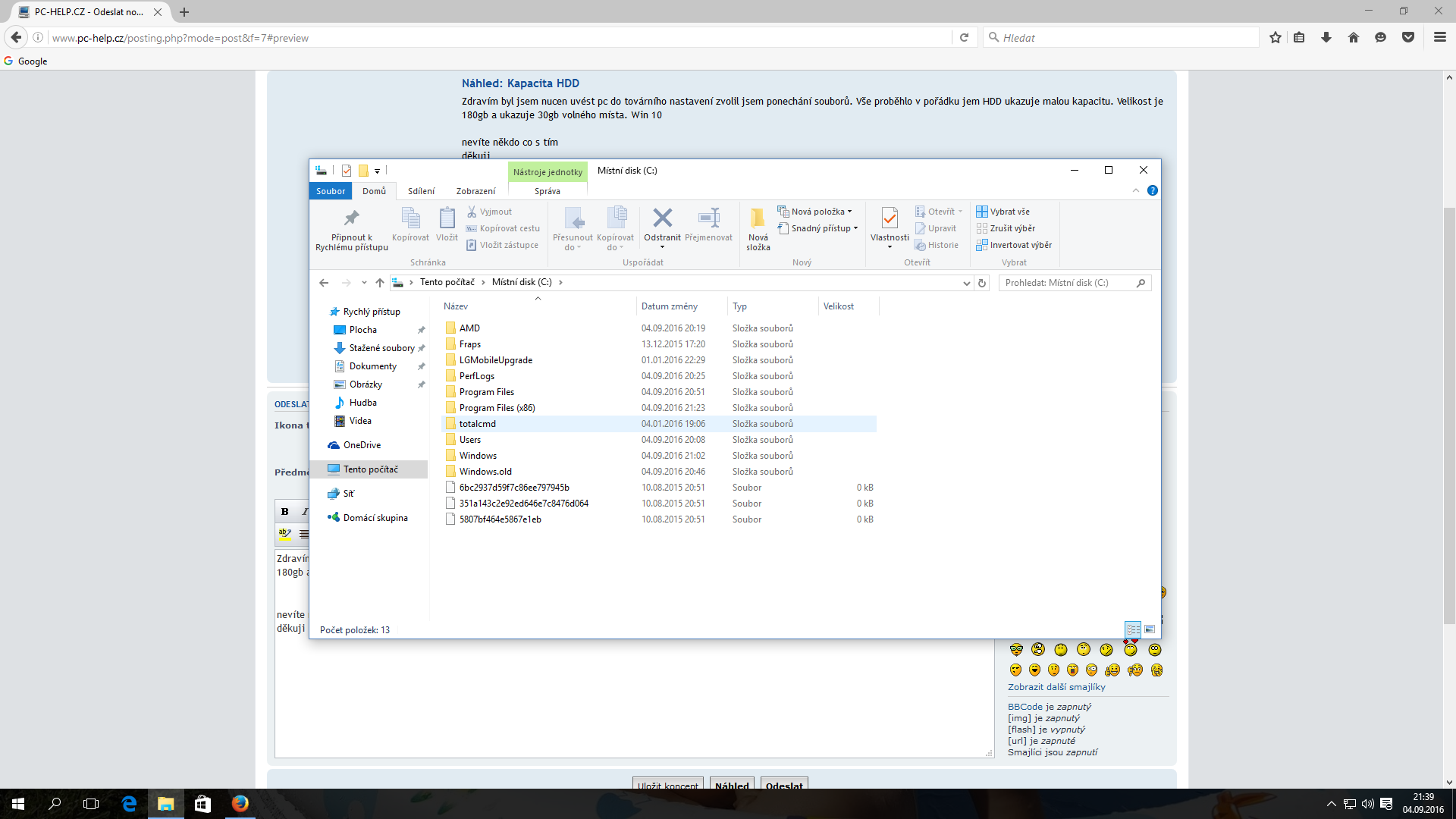 Zdravím byl jsem nucen uvést pc do továrního nastavení zvolil jsem ponechání souborů. Vše proběhlo v pořádku jem HDD ukazuje malou kapacitu. Velikost je 180gb a ukazuje 30gb volného místa. Win 10