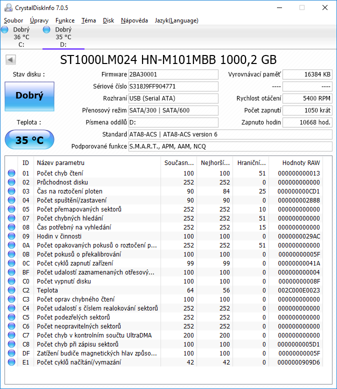 Moc se v tom nevyznám, ale přikládám ještě screen z programu CrystalDiskInfo.