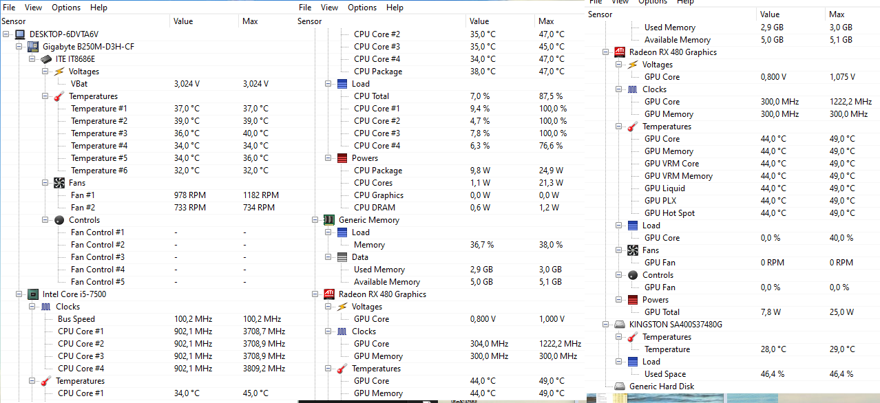 při hraní, né moc náročných her mi dochází k zahřívání GPU - RX 480 4gb. U třeba takového counter-strike global offensice se to dostala skoro na 90C* potom přišel crash celého pc, u jiných her cca 80 C* . Nevím co stím, začlo mi to dělat až po tom co jsme vyměnil disk z HDD na SSD, - myslel jsem že jsou nastavené ventilátory na malou rychlost, ale jedou na max, to je blbost aby na to mělo vliv výměna disku ne ?