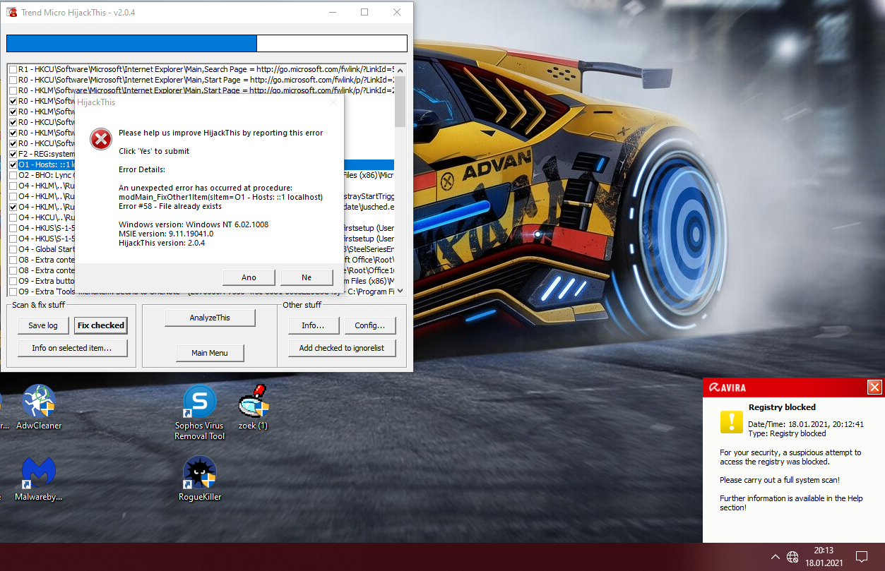 Zavři ostatní aplikace a prohlížeče, odpoj se od netu a fixni v HJT: