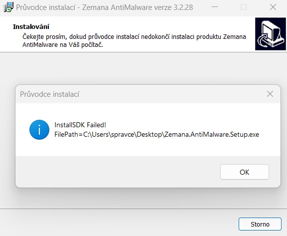 Zkus restart a pak znovu instalaci, předtím deaktivuj antivir.