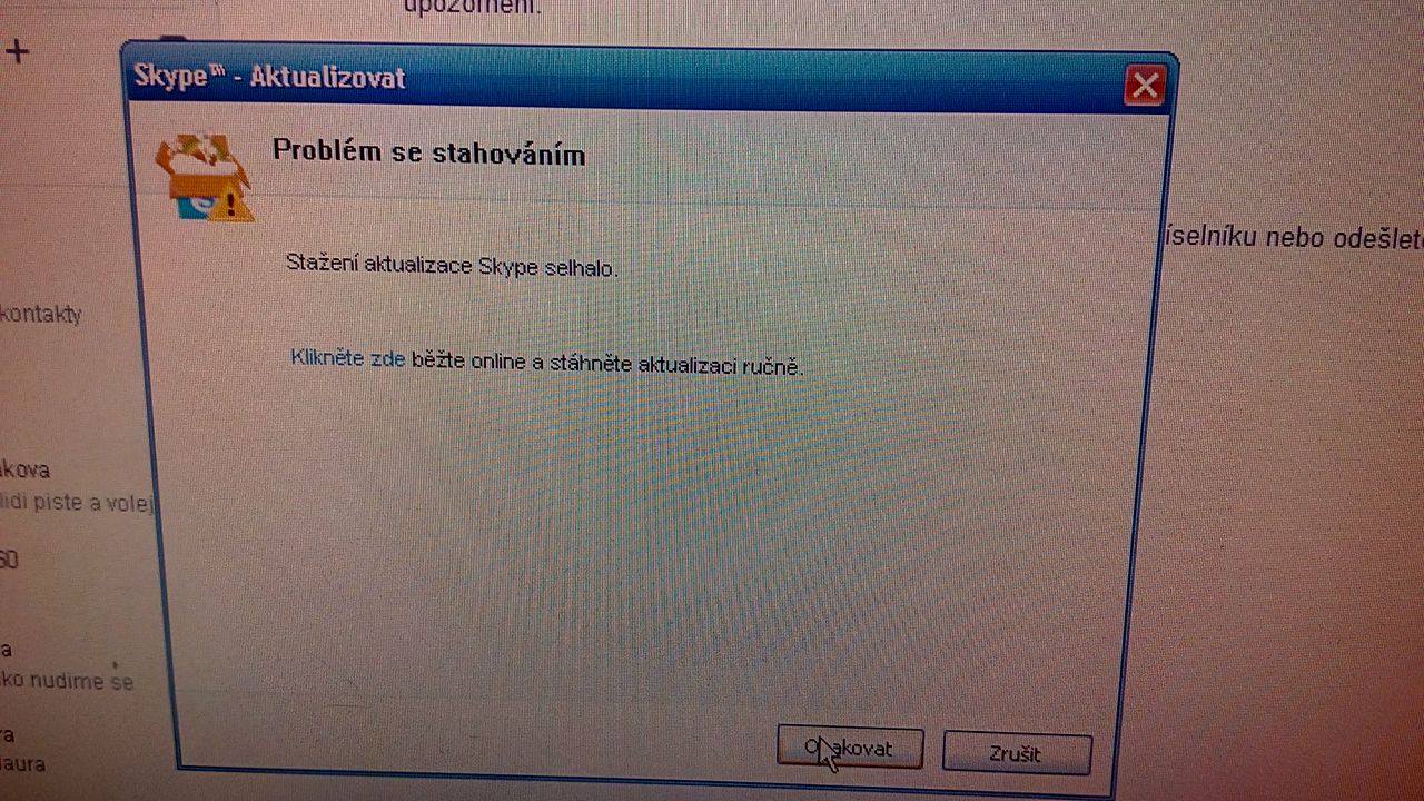 Skype jsem odinstaloval vyčistil Cleanerem.Pak jsem šel na stránku Skype.Stáhl skype pro počítač,nainstaloval.Vše proběhlo v pořádku.Tak jsem skontrojoval verzi skype a vyskočilo okno že je dostupná novější verze,lae když ji chci stáhnout tak další chyba.