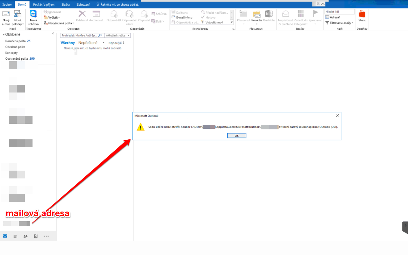 MS Outlook 2016 - Sadu složek nelze otevřít
