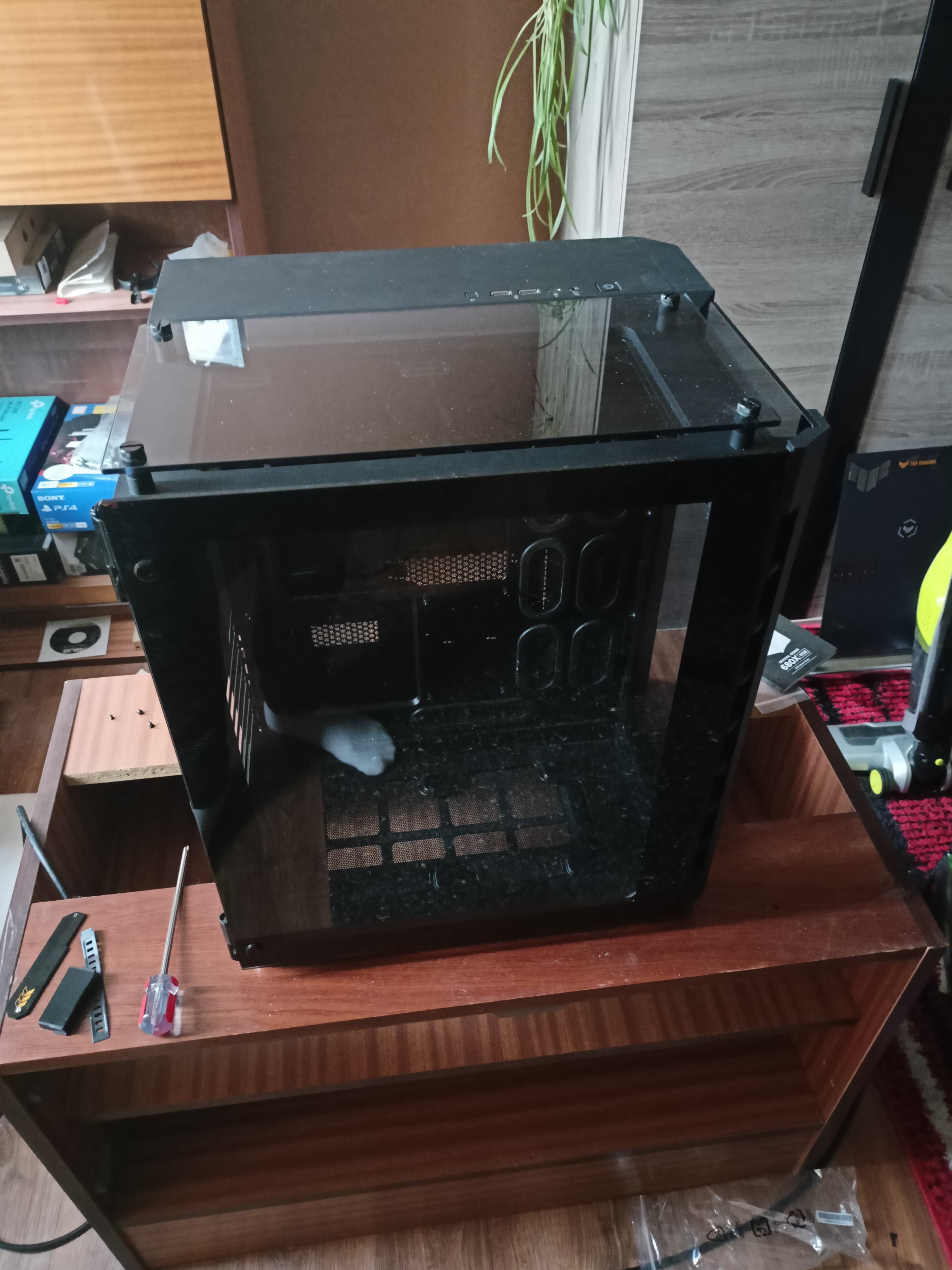 Skříň je z oceli, obohacena průhlednou tvrzenou bočnicí a 2 tvrzenými (nahoře a vepředu.)