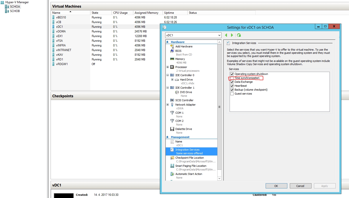Nedávno jsem provedl update Domain Controlleru z fyzyckého HW do virtuálu, který běží pod Hyper-V a od té doby se začal posouvat čas napřed, teď už to je skoro 18minut.