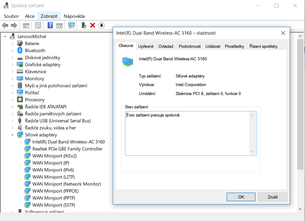 Dále si prostuduj v mém podpisu diagnostiku wifi a dej sem screen ze správce zařízení rozkliknutý na síťových adaptérech a vyýpis ipconfig /all v době funkce a nefunkce.