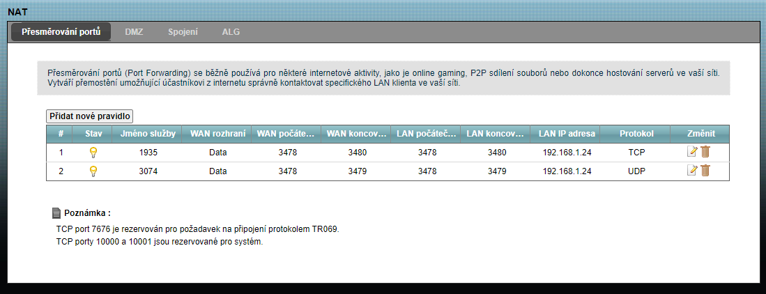 Podle tohodle návodu jsem otevřel porty, což by mělo něco udělat, nicméně to neudělalo nic.