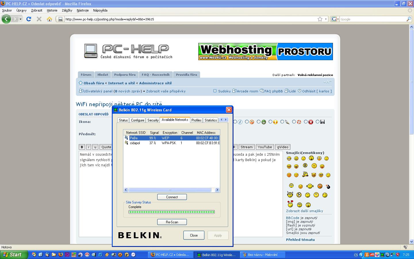 A ted k problému .. jak už sem řekl, připojujeme se na WiFi v kuchyni. Notebooky HP a Acer se připojí úplně v pohodě, dostanou správnou IP (192.168.123.XXX) a jednou. Ale máme tady 2 notebooky Asus, které to prostě nepustí. Začnou se připojovat, připojí se, dostanou šílenou IP (169.254.XXX.XXX) a vypíše to Omezené nebo žádné připojení.