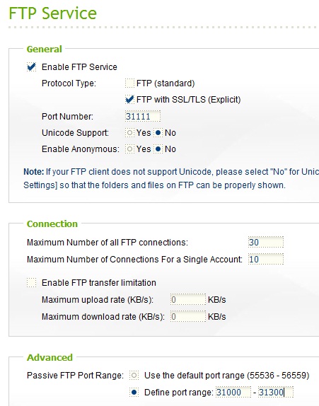 2. router: směrování portů (nastavených službě FTP v nasu) na IP adresu nasu. vypnout virtual FTP.