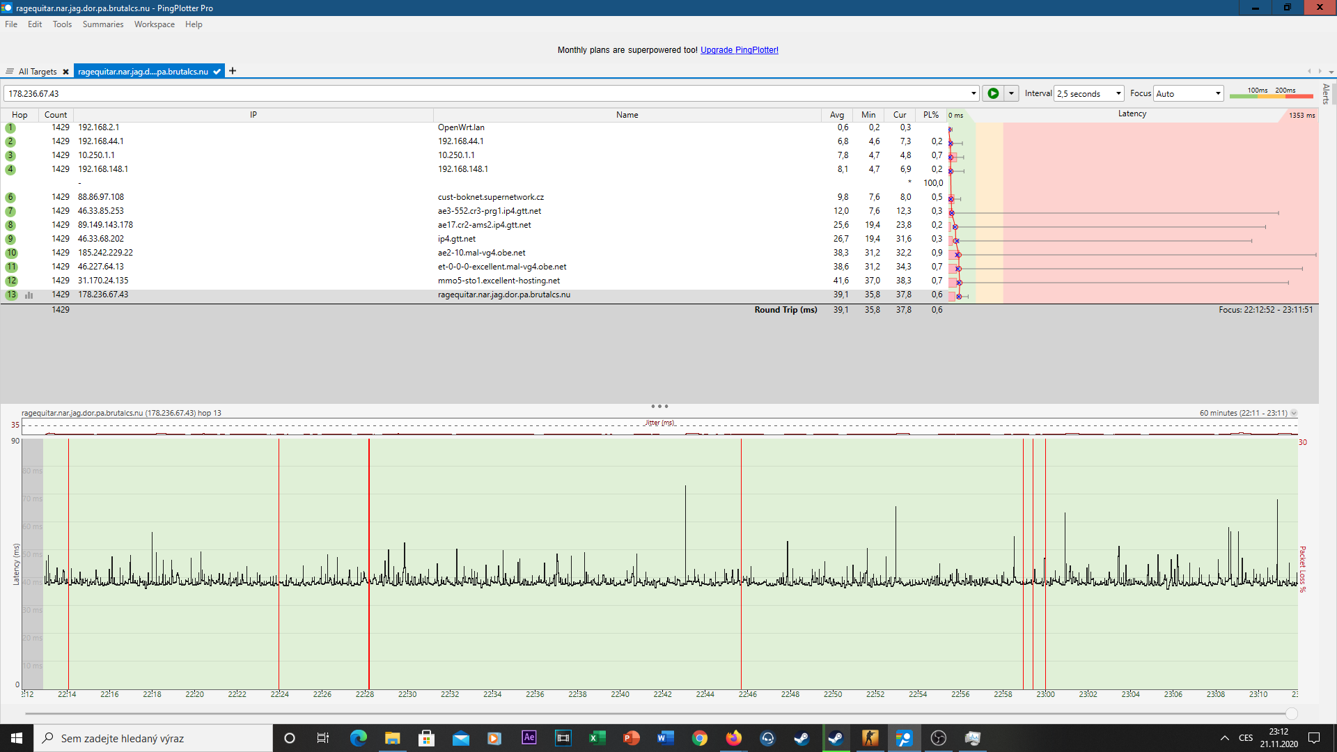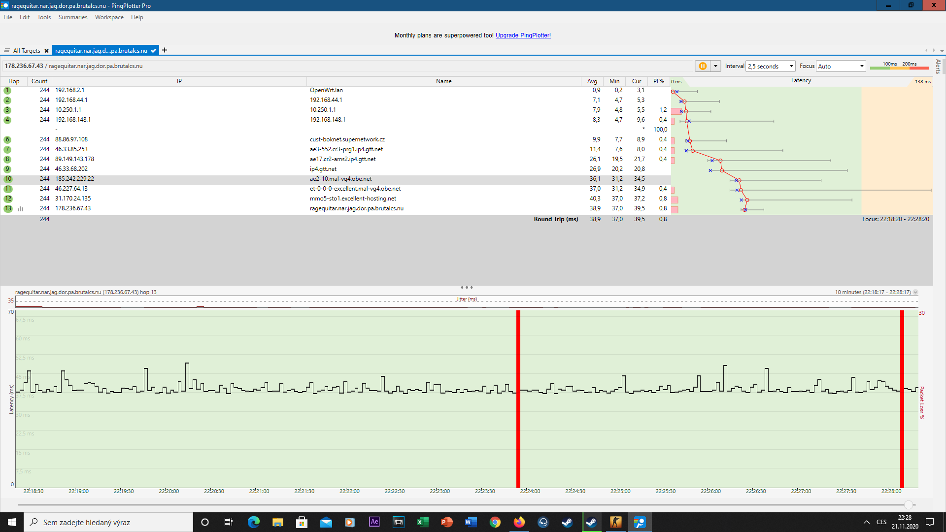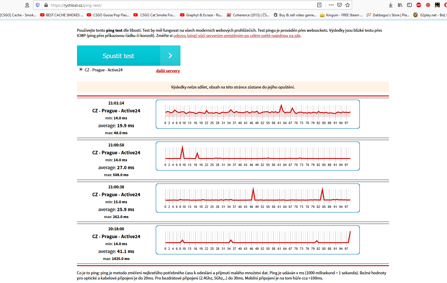 Ping je nestabilní beží na 20ms a pak skočí na 1s na 300ms a takto je to pořád do kola.