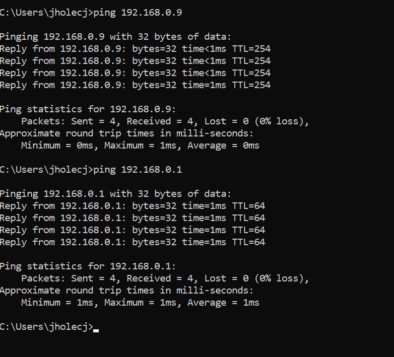 Ping na ZYXEL router 192.168.0.9 a take ping na UPC router 192.168.0.1: