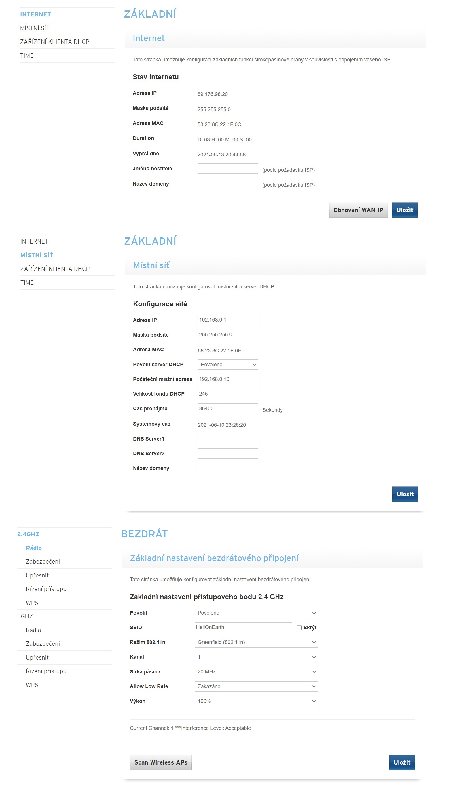 nastaveni UPC modemu jsem nemenil