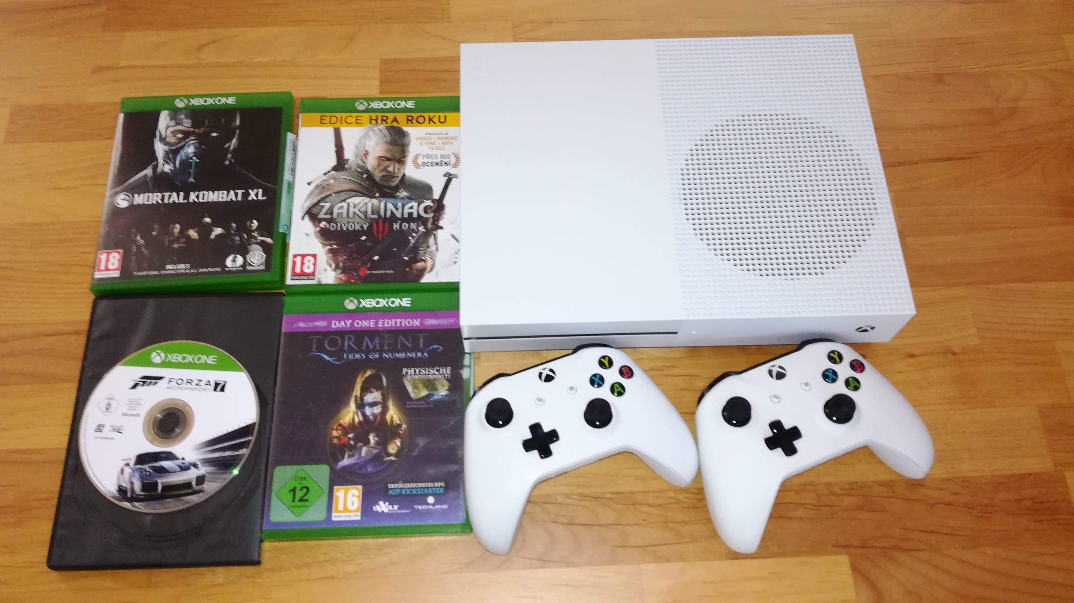 Zdravím prodám Xbox One S 500 gb,s ovladačem,origo krabice.Záruka 2/2019.S účtem Ac Origins,Nhl a Fifa 18,Xbox live do června.K tomu můžu dodat za 900 Kč další ovladač a hry : Mortal Combat Xl,Forza Horizont 7,Zaklínač 3 Edice Hra Roku.Popřípadně vyměním za ps4.Kdyžtak více info na sms nebo email.Cena dohodou.