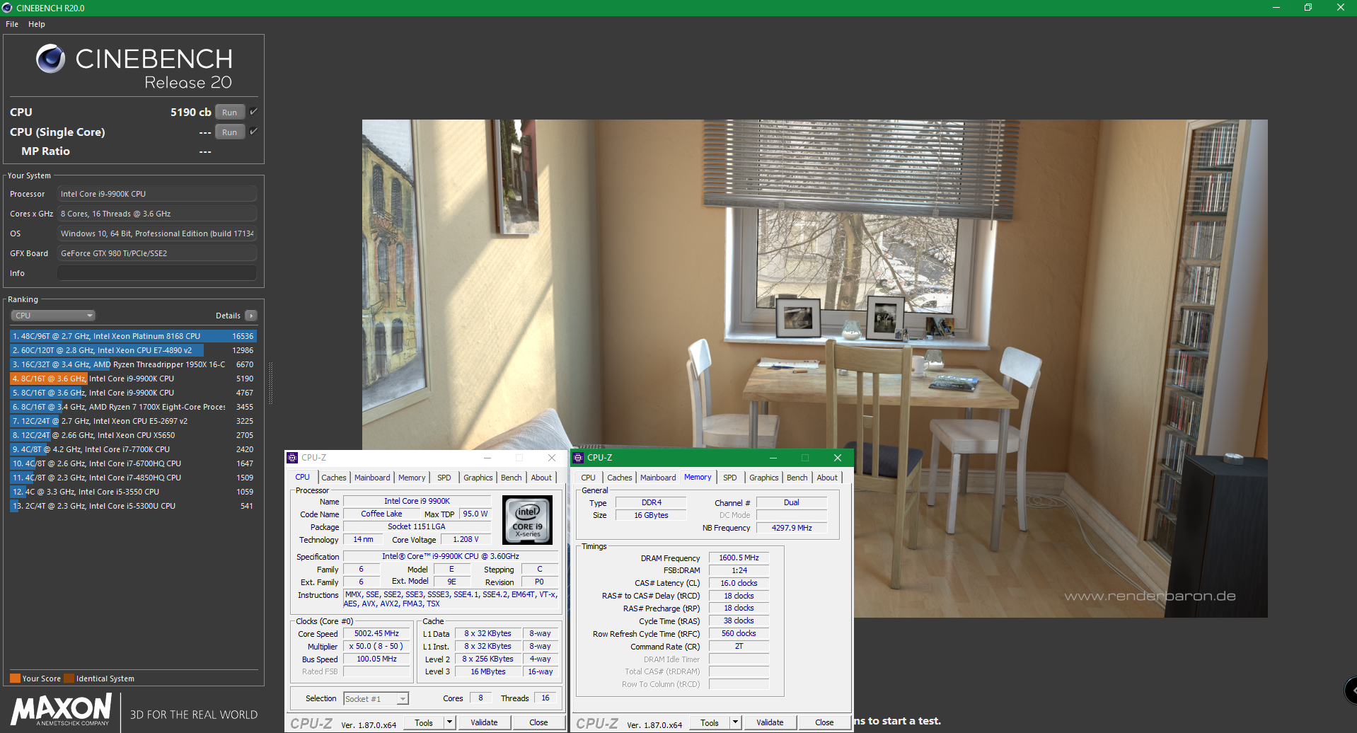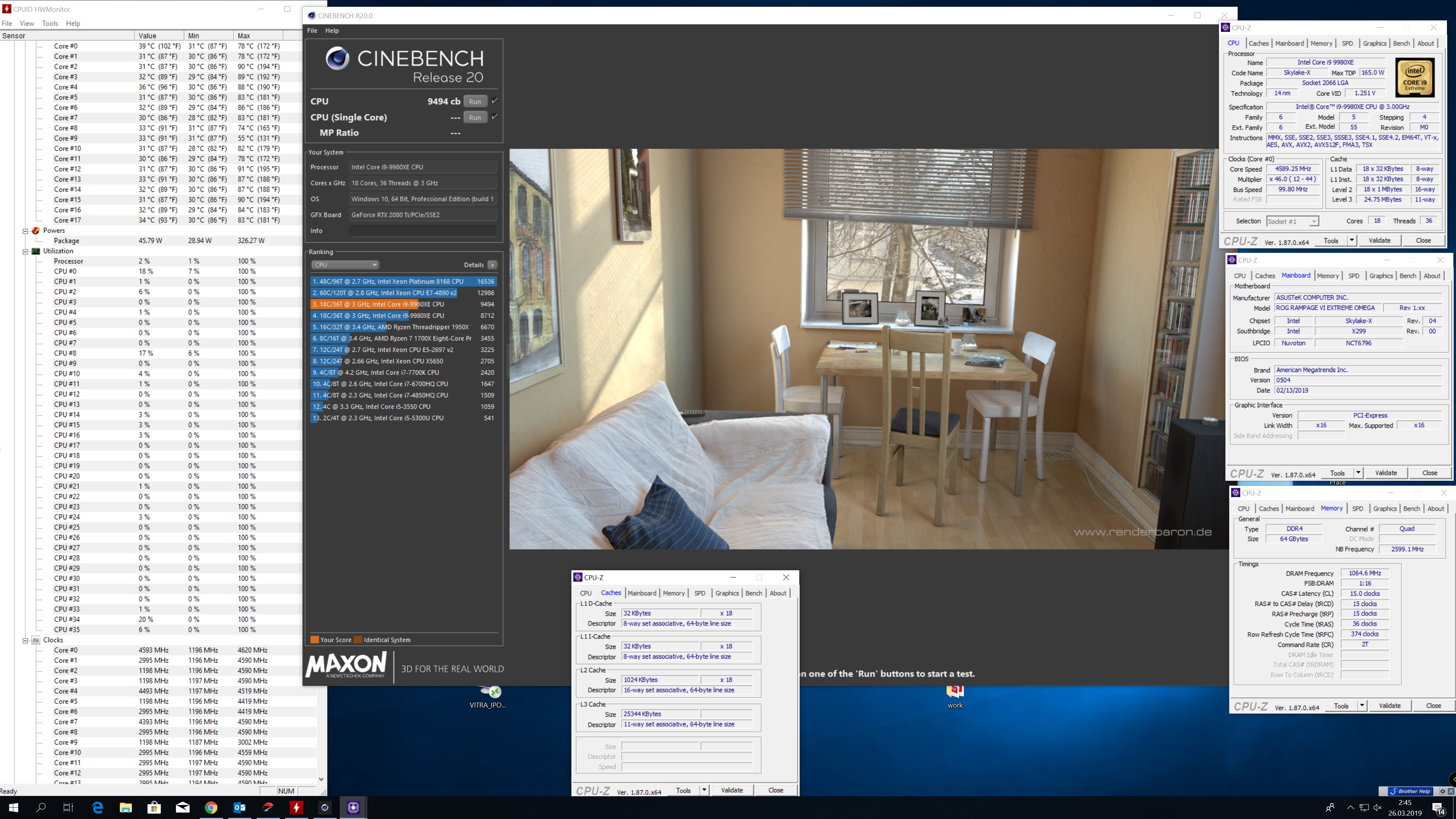 Po pár letech vyšel nový render od Maxonu, jež se používá v programech Cinema 3D/4D Studio. Aktuální řada je Cinema relase 20 a dle něj je nastaven algoritmus Cinebench R20. Ten již umí využívat i AVX instrukce! I proto nyní Intel z něj bude lépe profitovat, jelikož implementace AVX je lépe řešena na moderních Coffee Lake (2x 256bit SIMD) než na Ryzen Summit Ridge a Pinnacle Ridge (2x 128bit).