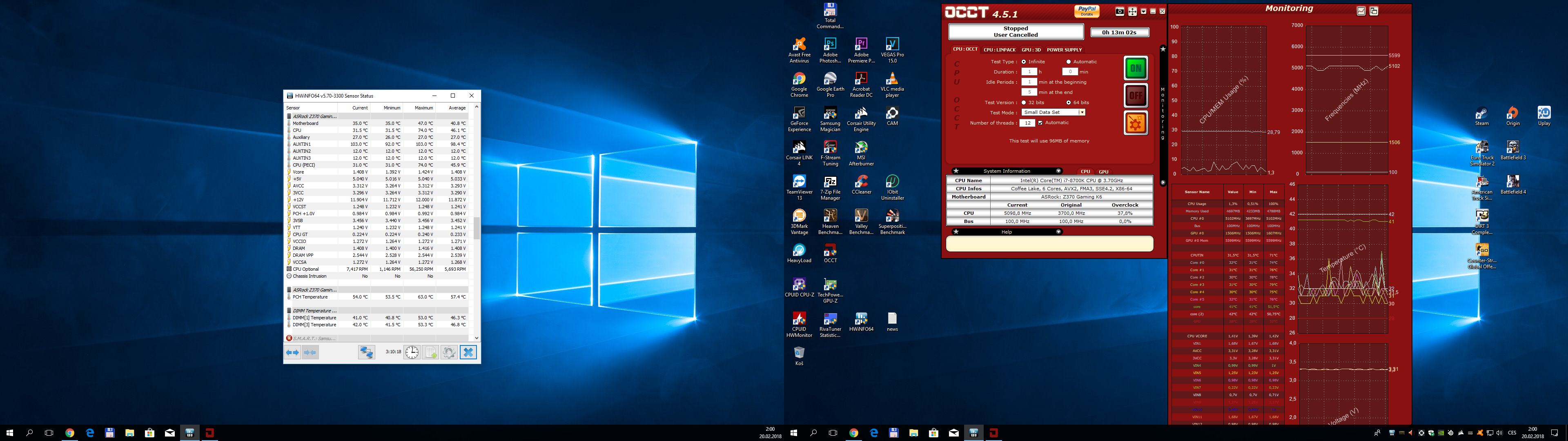 CPU: i7 8700k - 5,0GHz all cores avg temp. 68-70 °C+ Olymp alpenföhn