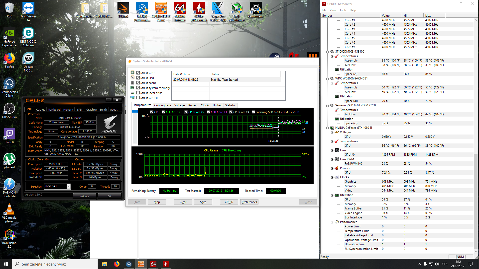 Asi tak no, ty teploty nejsou nijak kritické, aby to způsobovalo BSOD, ten delid děláš jen abys je neměl tak vysoké a nebyla taková spotřeba, protože ta tomu rozhodně moc nepomáhá, jinak prostě máš spíš horší kus a v zátěži to nedá, že to pak zvládne 5GHz bych raději moc neočekával, upřímně docela slabota, tak ale co čekat od takového přímotopu, vyměnit to za i7 9700K by bylo určitě velice rozumné a na běžný provoz má o hodně lepší vlastnosti (ten delid už má smysl dokonce i tady, ale zas už to není taková nutnost), tak ale to by záleželo hlavně na tom, za kolik by ses ho zbavil a za kolik bys sehnal tu 9700K, aby se ti to vyplatilo. Pokud ji pak dostaneš na 5GHz, tak ten výkon nakonec bude určitě ještě vyšší než i9 9900K@4,7GHz, ale jinak to je ve hrách stejně srovnatelné (na stejných taktech), jelikož to HT už stejně ani nevyužiješ.