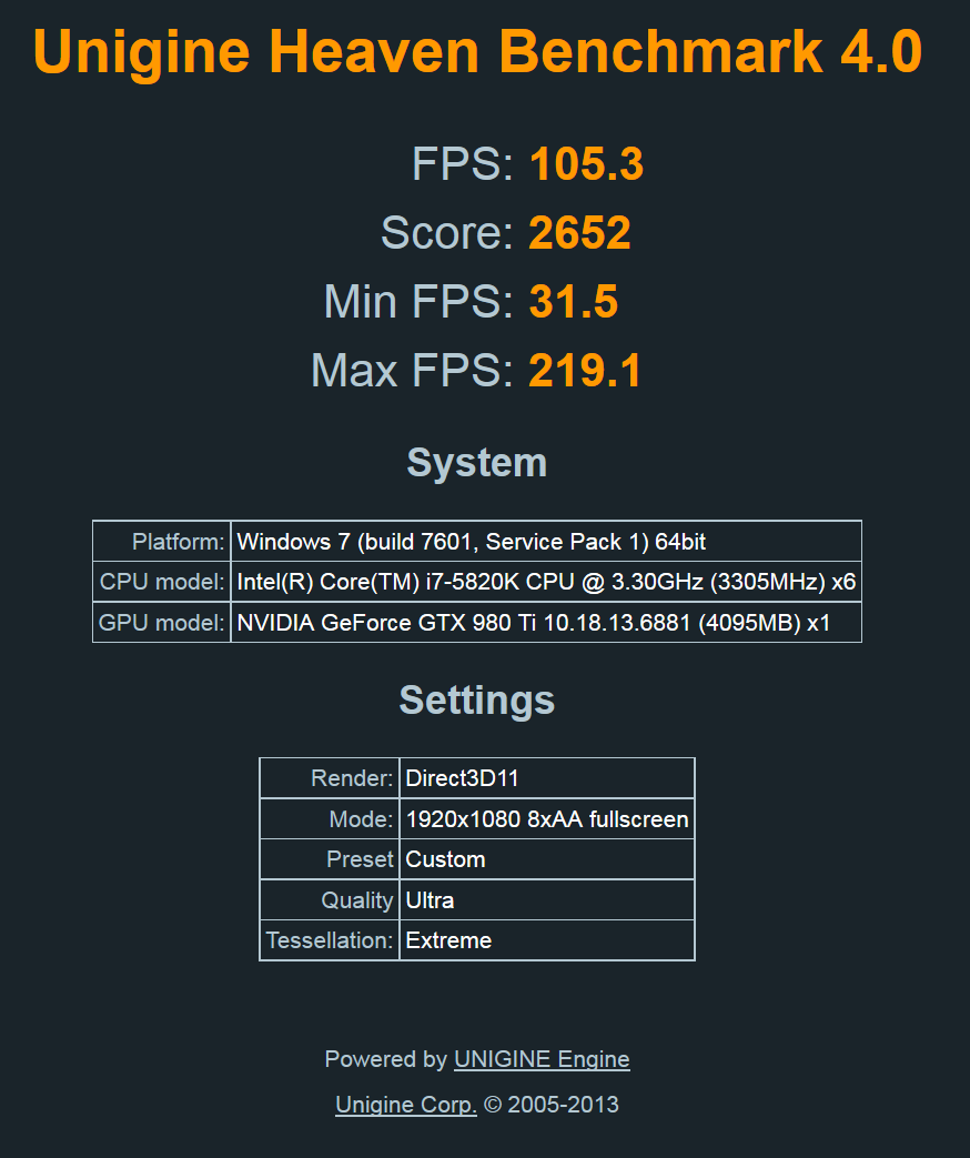 Re: Změřte výkon s ostatními v Unigine Heaven 4.0