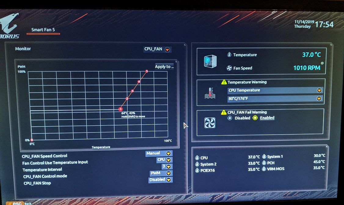 Díky za reakci. Ano ten obrázek je z biosu. Ne teda z mýho, nejsem u PC. větráky jsem řešil jen přes bios. Fan xpert jsem nenastavoval. Nakonec jsem hrábl pro argus.