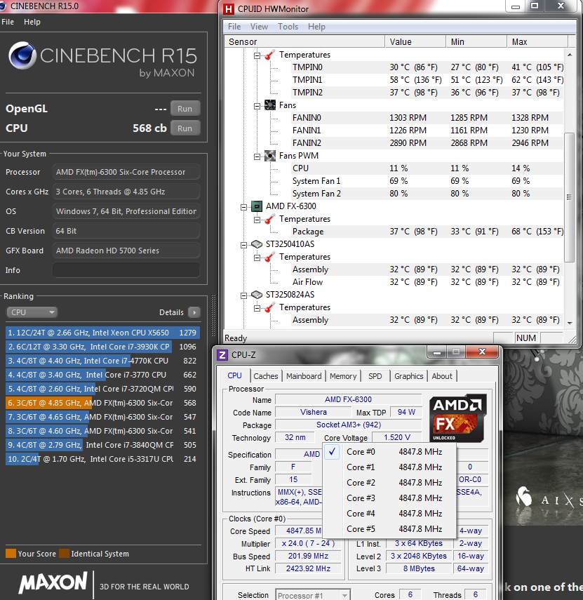 klasika.. i3 default 3,3Ghz a HD 7790 pretaktovaná na 1200 Mhz...