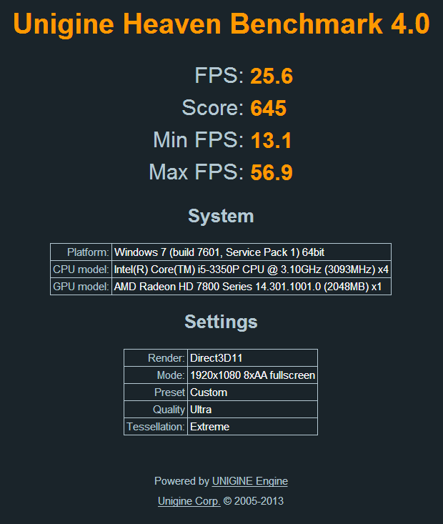 Re: Změřte výkon s ostatními v Unigine Heaven 4.0