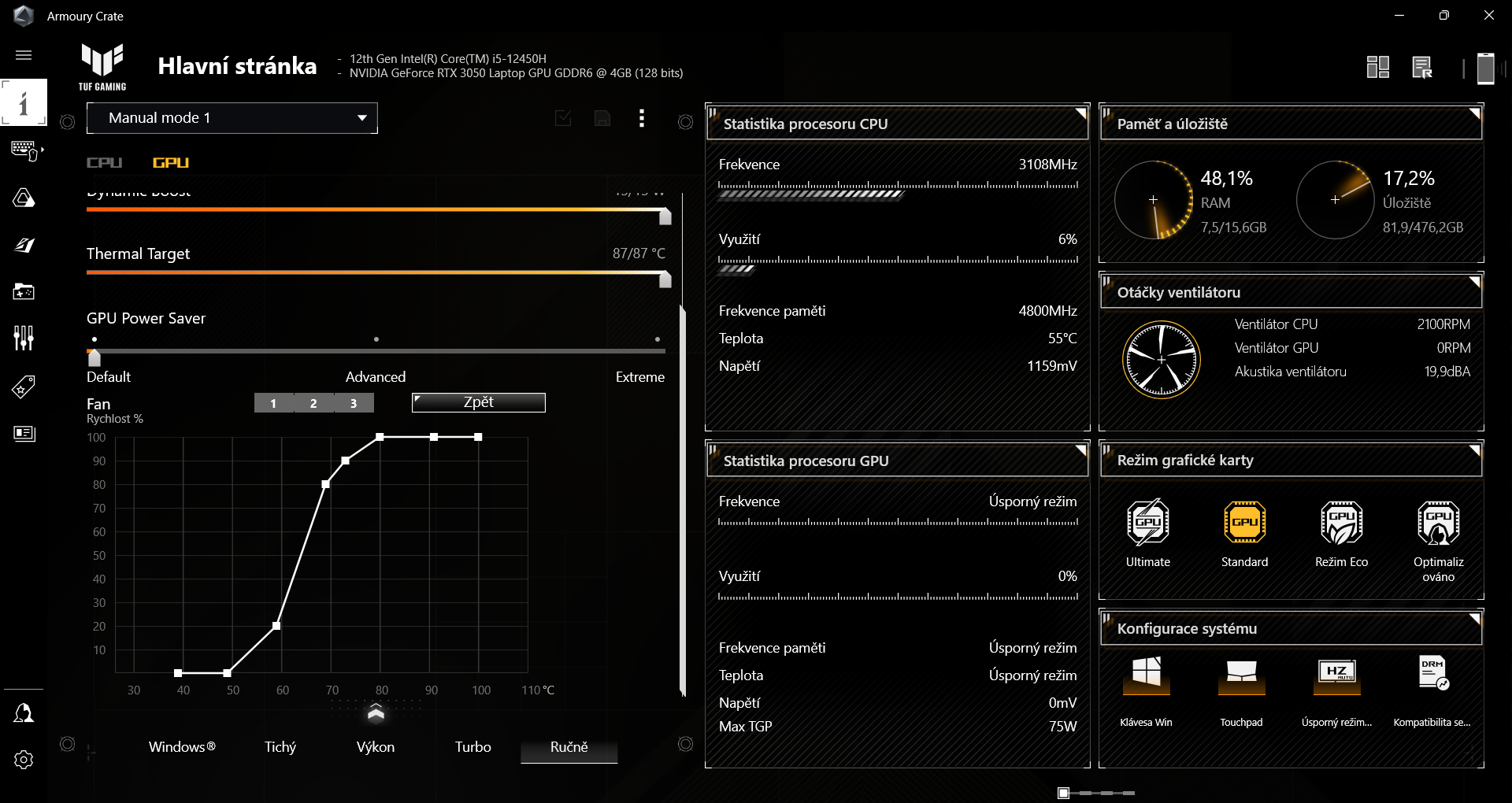 Re: ASUS TUF Dash F15 - Nastavení výkonu a chlazení