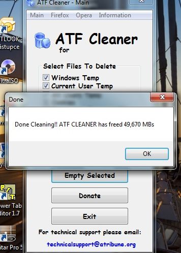 ATF-Cleaner je jednoduchý nástroj na odstranění historie z webového prohlížeče. Program dokáže odstranit cache, cookies, historii a další stopy po surfování na Internetu. Mezi podporované prohlížeče patří Internet Explorer, Firefox a Opera. Aplikace navíc umí odstranit dočasné soubory Windows, vysypat koš atd.