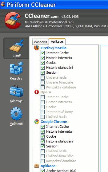 Špatně nic nedělám /snad/, jenom jsem klepal na zástupce na ploše. Ale klikl jsem přímo na stažené .exe a opět bez výsledku. Možná ale bude zakopanej pes jinde, protože ani WinOptimizer nefunguje. Sice toho najde a smaže habaděj, ale v Opeře vše zůstane - historie, sušenky.