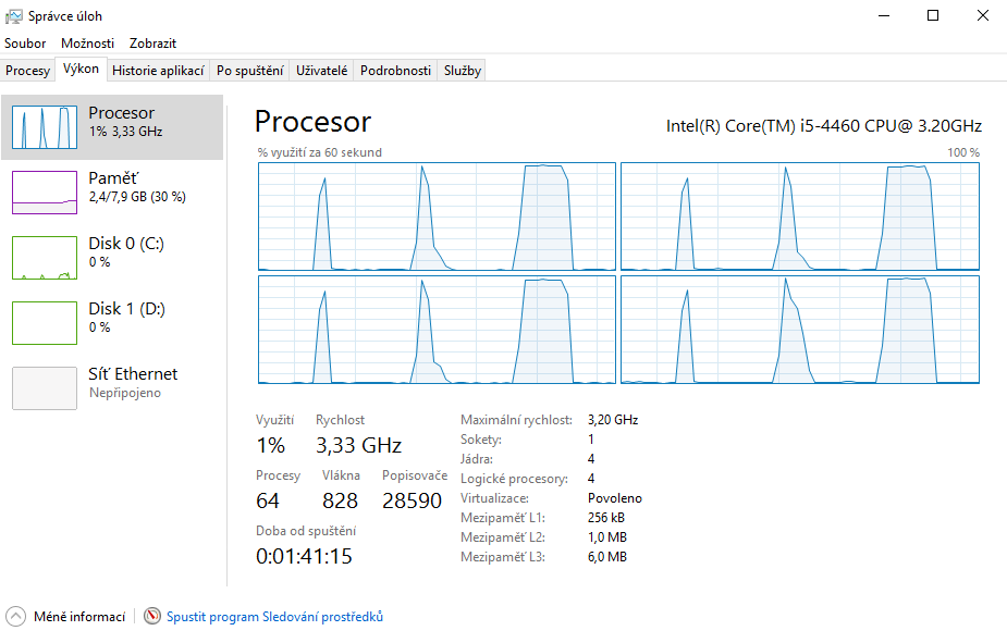 Takže jsem přistoupil k pokusné výměně procesorů mezi oběma PC a ejhle. V tomto konkrétním převodu je problém jen a čistě v v i5-4460 (nevím jestli v i5 obecně nebo jen tomto modelu). Vadu mého procesoru bych ale asi vyloučil, když jiné zátěžové testy jede naplno a i exporty jiných formátů videí zvládá...