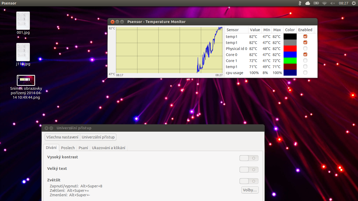 Zdravím všechny - mám jednoduchý dotaz. Chci používat Ubuntu, mám aktuálně 13.04, ale když ho nabootuju, v nečinnosti je schopný jít přes teploty 80°C, což je nepřijatelné, po pár týdnech těchto teplot bych mohl dát notebooku pápá, a to nechci zkoušet co to dělá když pustím HD video. Mám notebook asus x54h, pentium b950, radeon hd7470. viz. screen jen minutu, dvě nečinnosti po nabootování.