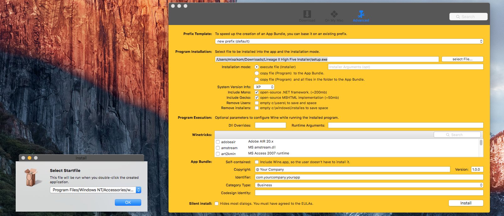 Re: OSX El Capitan (CrossOver) .exe, Lineage II